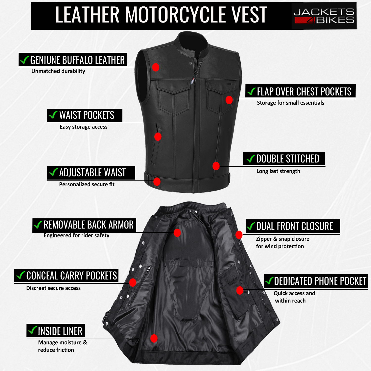 Men's ARMOR Leather SOA Anarchy Motorcycle Biker Club Concealed Carry Vest