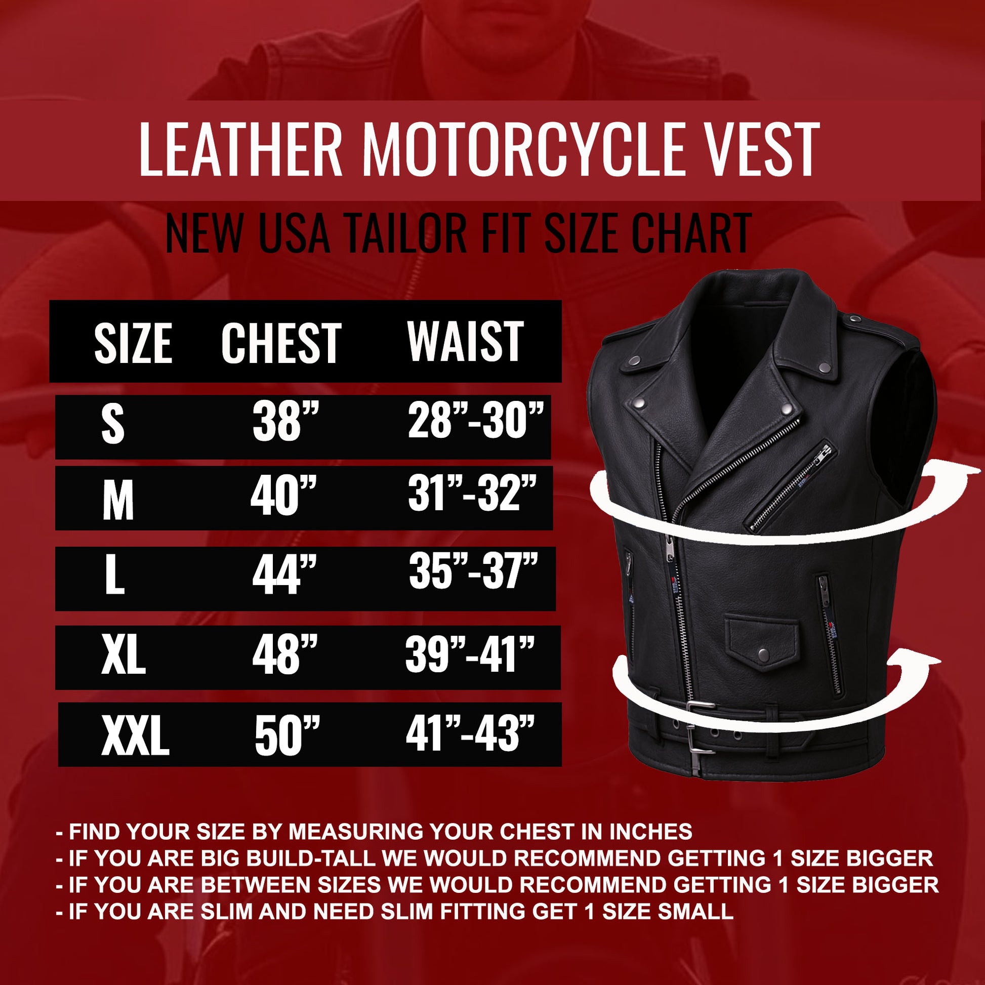 Men's Classic Leather Motorcycle Biker Concealed Carry Vintage Vest Black