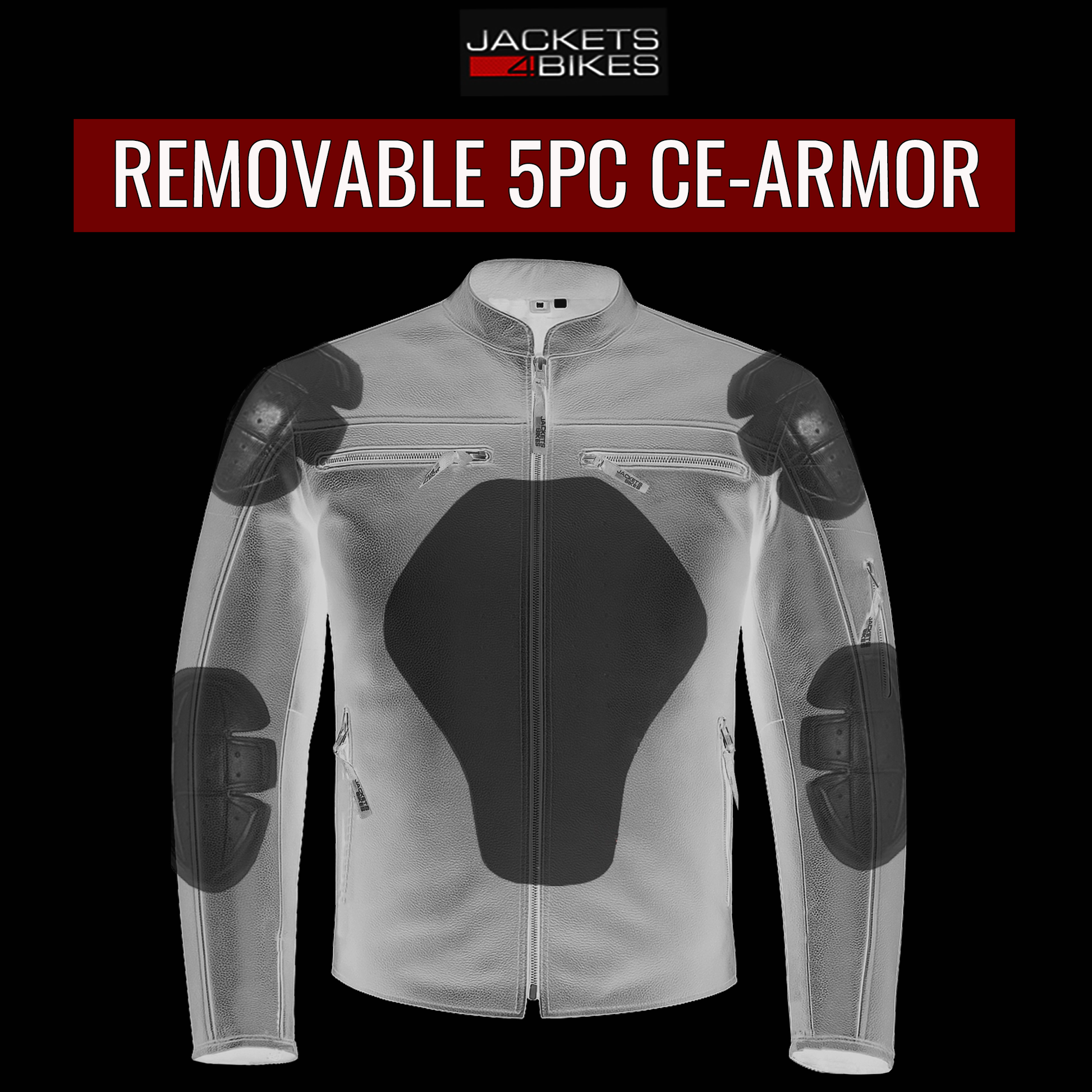 - 5PC REMOVABLE CE ARMOR: This biker leather jacket for men comes with 5PC CE removable Armor that comes pre-installed in the jacket. This motorcycle leather jacket has added padded protection elbows and shoulder areas.